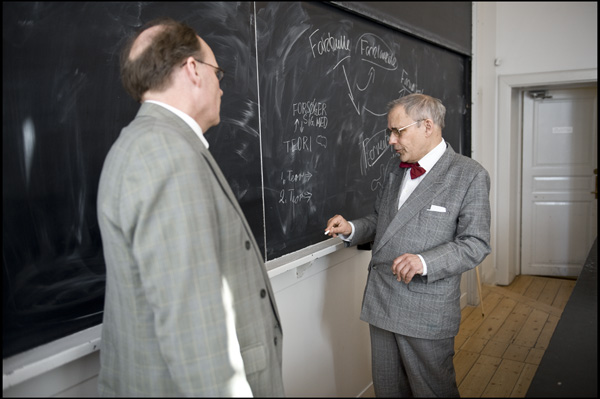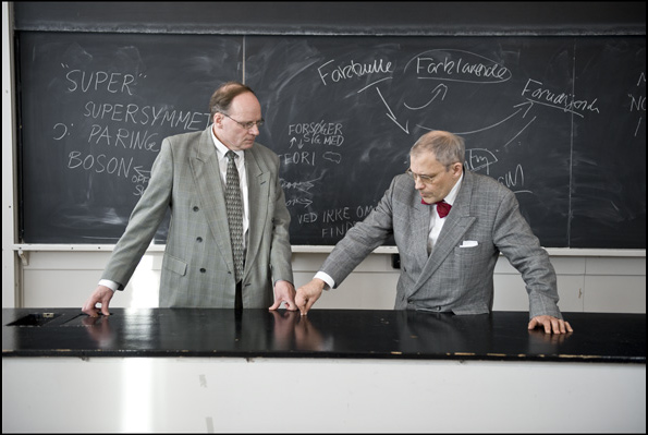 Holger Bech Nielsen og Bent Raymond Jørgensen diskuterer Strengteori